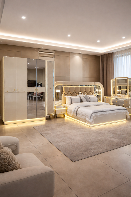 Transform your bedroom into a refined sanctuary with this stunning modern bedroom set, designed for those who appreciate sophistication and comfort...