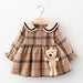Dress your little one in timeless charm with this long-sleeved baby girl dress. Featuring a classic plaid pattern, a neat collar, and an adorable teddy bear charm, it combines style and comfort perfectly. Ideal for keeping your baby cozy while adding a sweet touch to any occasion, this dress is a delightful choice for your baby’s wardrobe.