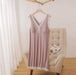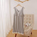 Experience ultimate comfort with this women's lounge wear dress crafted from soft, breathable fabric that feels gentle on your skin. Designed with built-in chest pads for added support, a flattering V-neck, and delicate lace trim, it combines style and ease effortlessly. Its solid color and above-knee length make it perfect for relaxing at home or casual outings, ensuring you look and feel your best all day long.